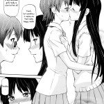 What a nicely lovey-dovey yuri (lesbian) hentai manga with Mio Akiyama and Nodoka Manabe. The ultimate question is, is a kiss between girls weird? Not at all, actually it is pretty normal. Sometimes girls kiss each other just for fun, but not these two. You can clearly see the love in their relationship.